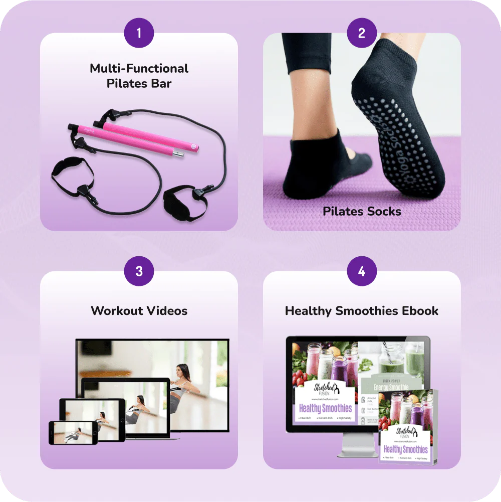 You can try out this Pilates bar risk-free for 180 days alongside our 30-day challenge workout videos.